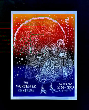 PHISH Worcester Centrum November 28,29, 30, 1997 Linocut Poster ( Just working the turkey through).