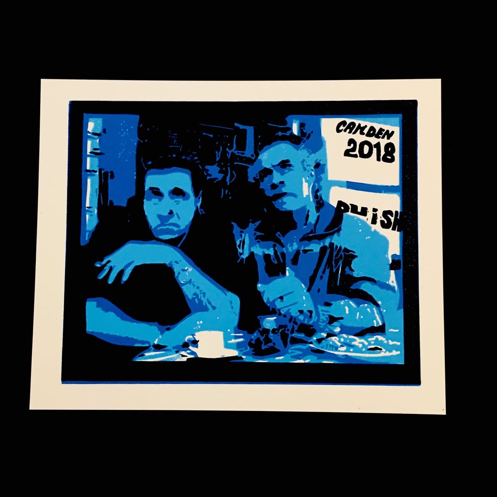 Hand cut, hand printed linoleum block posters to commemorate Phish's Shows in Camden, New Jersey. Limited edition of 30 impressions for each colorway (signed and numbered). Printed on fancy 100lb French Speckletone Paper. Prints measure 12 x 14 Will ship the second week of August.