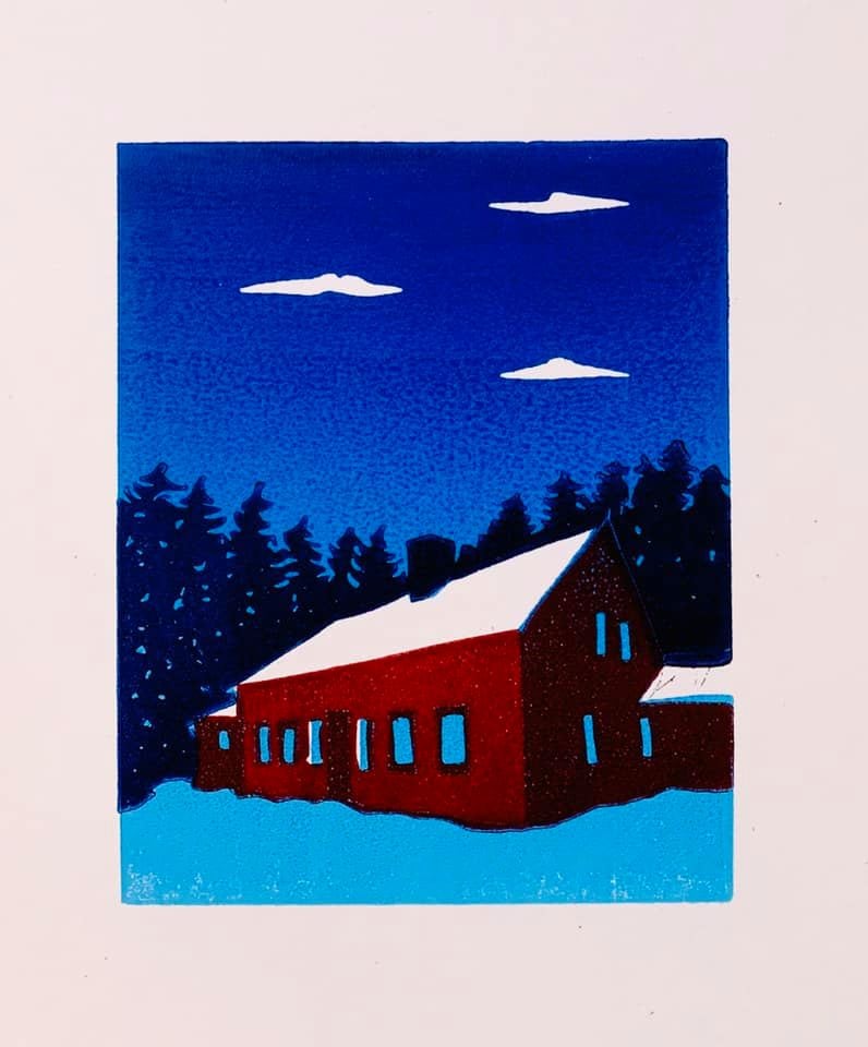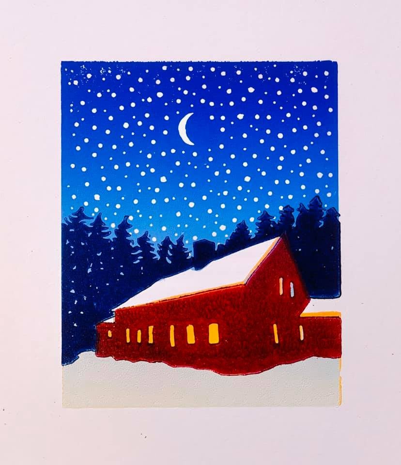 Hand Cut, Hand Printed Small Format Landscape. Prints Measure 6 x 7. Matching Number Sets are available. Three colorways are available: Daybreak (yellow Orange); Dusk (Blue Fade) and Under the Stars (Blue Fade w Stars).
