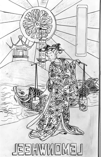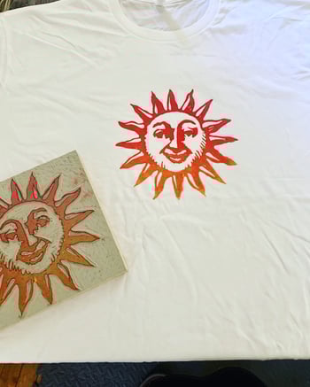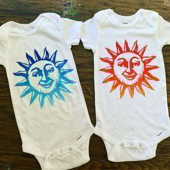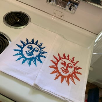 Orange Sunshine/Hand Printed Kitchen Flour Sack Style Tea Towel Set